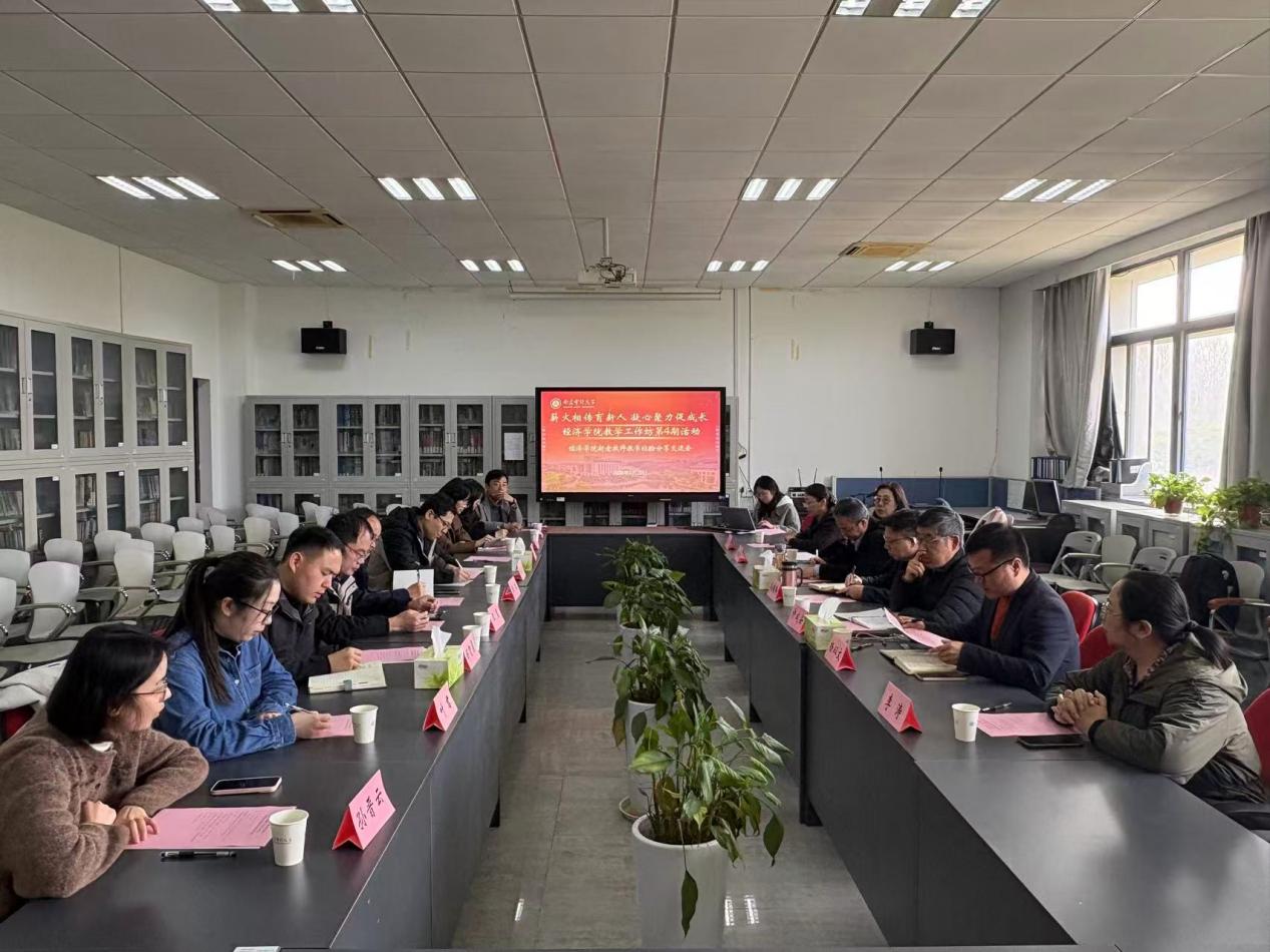 2026年3月25日,经济学院本科教学工作坊第4期暨院关工委活动在敏达楼415顺利举办。本次活动以新老教师教学经验分享交流为主题,校关工委委员、学院关工委常务副主任许成安,校关工委委员卢加元,经济学院党委书记、关工委主任孙国锋,经济学院副院长、关工委副主任杨以文出席活动,学院本科教学督导代表、青年教师代表和教务办老师参加了交流会。本次活动是由院教务办、院教学督导组和院关工委联合举办。